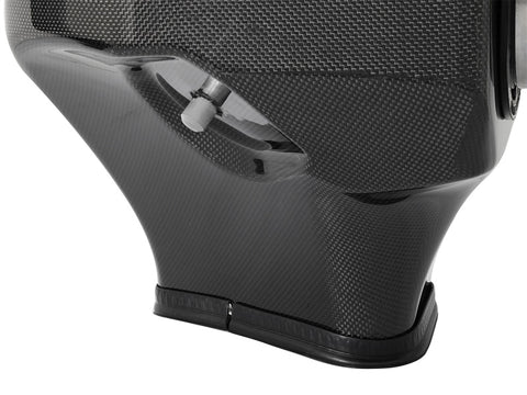 This Momentum intake system was designed around the largest filter possible to allow maximum performance and filtration. This cone filter has a massive (6.75" x 4.75") oval flange and is 8-1/2" tall. The system comes with both a Pro DRY S and Pro 5R performance air filter. The simple yet elegant design of the one-piece sealed housing makes installation a snap and features our (Patent Pending) filter-to-housing interface. A large clear sight window allows for filter inspection without removal of the airbox. The housing is made out of lightweight high gloss, clear-coated plain weave carbon fiber and mounts directly into the factory headlamp cold air inlet location on the driver side to capture the coolest air available from the factory intake tract. Momentum intakes are designed with fewer parts for a quick and simple installation.
