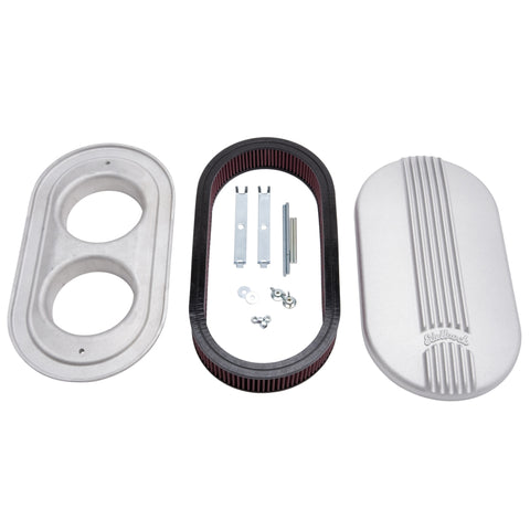 This new line of air cleaner #41199?was created to perfectly match our popular classic aluminum finned valve covers. Three models for single or dual-quads give you plenty of options for that "just right" look on any nostalgia rod or muscle car. Additionally, the small oval air cleaner provides adequate hood clearance in demanding applications as well as a coordinated appearance with the classic finned look. Our classic series air cleaners are available in either a classic polished aluminum or durable black powder coated finish. They come with medical grade, pre-oiled cotton gauze element for excellent filtration. These air cleaners work with all popular 5-1/8" necks, for all carburetors or throttle bodies.