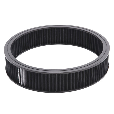 PRO-FLO high-flow 14" round air cleaner #43668 feature?a color-matched breathable lid and 3" tall element. Designed to work with all popular 5-1/8" diameter carburetors. Each filter is washable and reusable; the unique Pro-Charge strip will let you know when it's time to clean your filter. Use Edelbrock Pro-Charge Cleaning Kit #43600 to clean and re-oil. Includes installation accessories and an Edelbrock script "E" nut.?