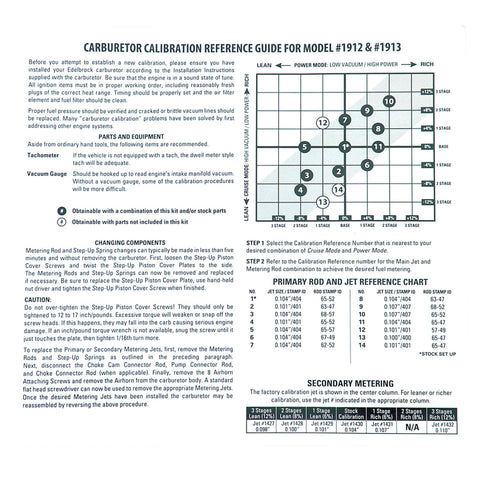 The AVS2 Series Carburetor Calibration Kit #1949 is for tuners looking to custom-tune the performance of their AVS2 Series #1912 (manual choke) or #1913 (electric choke) 800 CFM carburetor. This kit contains all of the necessary metering rods and jets that will allow you to adjust your AVS2 carburetor either richer or leaner for both cruising and power modes. This kit also includes an assortment of five pairs of jets, seven pairs of metering rods, five step-up springs, metering rod retaining springs, six replacement hairpin springs and a calibration chart that tells which rod/jet combination to use, all organized in a handy reusable storage case.