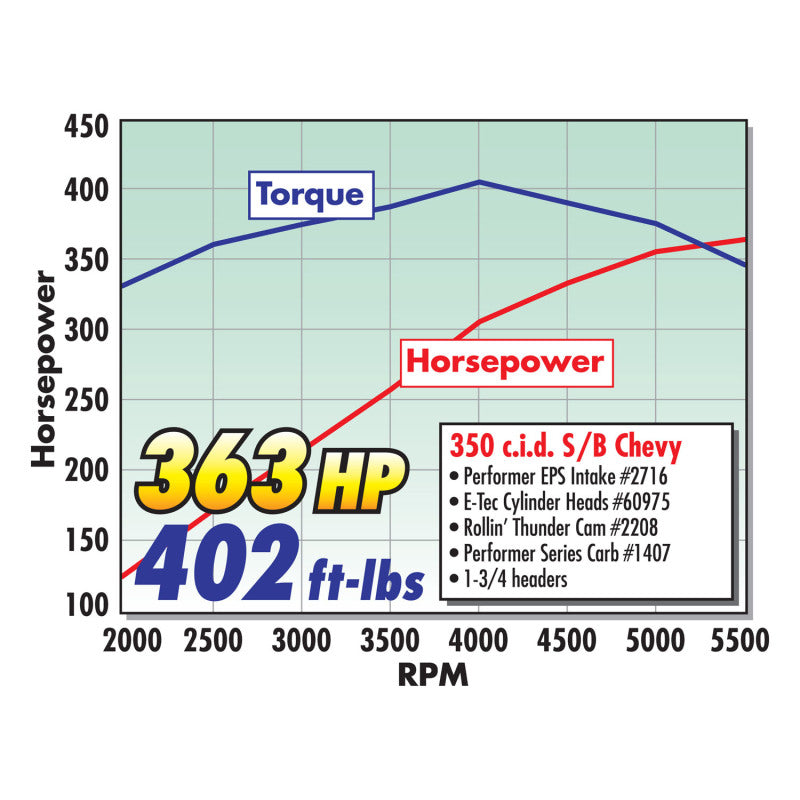 Edelbrock part #2716 Performer EPS Vortec intake manifold is now available for small-block Chevys with Vortec or Edelbrock E-Tec cylinder heads, the Performer EPS dual-plane manifold is optimized to deliver superior performance with Edelbrock square-bore Performer Series or Thunder Series AVS carburetors. The runner design is "tuned" for peak torque around 3500 rpm on a 350-inch engine and it's ideal for power from off-idle to 5500 rpm. Dyno tests showed gains averaging 5+ ft-lbs. of torque from 3000 to 4500 rpm for more performance where you need it most. Match with a dependable Edelbrock square-bore carburetor for maximum performance gains. Will not fit under stock Corvette hood.
