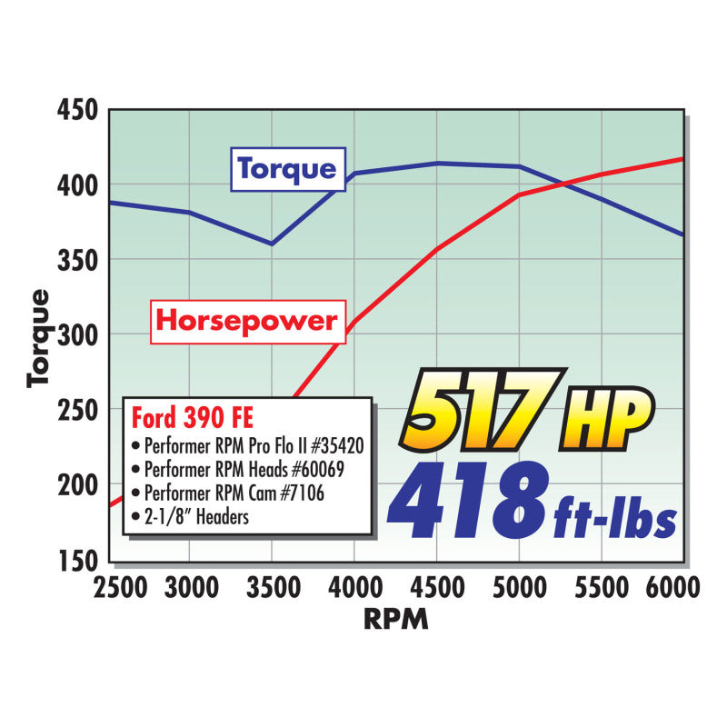 The Edelbrock #60069 Performer RPM cylinder head is designed for use with 1961-76 390-427-428 Ford applications. Edelbrock Performer RPM head is perfect for street performance, daily drivers, street rods and muscle cars where seat-of-the-pants performance is needed. This cylinder head delivers great throttle response and power from 1500 to 6500 rpm. They also feature the highest quality intake and exhaust valves and valve springs. For use on pre-pollution controlled vehicles only.