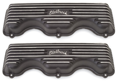 The Edelbrock #41403 Classic Series Valve Covers are designed for 348/409 W-Series Chevy applications. Edelbrock first made these aluminum valve covers in the late '50s and they're still a classic. Made of heavy-gauge sand-cast aluminum, Overall height is measured from base to top at the highest point. Edelbrock classic valve covers can be machined to accept breathers if desired.