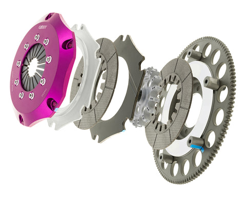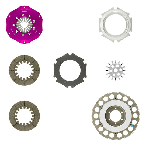 EXEDY carbon discs are able to perform through long durations of high rotational velocity due to our precise application of carbon. Carbon material also possesses a ''non-stick'' characteristic that eliminates disengagement problems. Available in single, twin and triple designs with both rigid or damper discs for a full range of power holding capacity. Carbon-D: The next generation of clutch systems by EXEDY is the Hyper Carbon-D carbon clutch system. Carbon-D was developed to achieve the ultimate goal of comfort and streetability by absorbing noise and vibration from drivetrain such as the differential, transmission and engine. The Carbon-D system is designed to protect the drivetrain by absorbing and dissipating ''shock torque'' by utilizing EXEDY Patented Technology. Superior engineering enables the Carbon-D clutch system to posses an ideal clutch engagement position, increased clamp loads and lower pedal effort, while the unique carbon fiber friction material allows comfortable half-engaged clutch operation and responsive gear changes. The EXEDY Hyper Carbon-D is available in both single and twin clutch configurations. Low Inertia Design: The weight of a carbon clutch disc is one third that of a metallic disc. Utilizing a high friction coefficient Hyper Carbon disc which allows for quicker shift response. Low inertia discs allow the transmission to synchronize in a shorter space of time eliminating time loss during shift changing while also reducing the applied load to the synchronizer. Easy to Handle: Semi-carbon clutches offer lightweight, high heat resistance and a stable friction coefficient. EXEDY carbon clutches are tuned so that at a lower temperature, engagement feeling is improved and conversely at high temperatures, engagement is ideal for spirited driving. All EXEDY Racing Hyper Carbon Series Clutch Kits carry SFI 1.2/1.5 Certification. Which means, when you buy these products you can be confident they are certified for use in competitive motorsports.