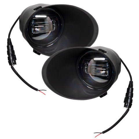 This is a pair of direct-replacement High-Performance LED Fog Lights for the 2007-2013 Toyota Tundra truck applications. These direct-fit fog lights feature factory mounting and plug-and-play wiring connections for easy, trouble-free installation. These amazing LED units push out approximately 1500 lumens which will vividly light up the road while only drawing 15W of power per light. The new rugged solid-state LED design can operate in the worst possible conditions. Each light utilizes a durable PMMA lens and Polycarbonate lamp housing to withstand impact. The solid-state LED emitters withstand the worst shock and vibration while the epoxy-sealed electronics prevent moisture and corrosion. The aggressive blacked-out look gives your vehicle a modernized appearance and improves night-time visibility at the same time.