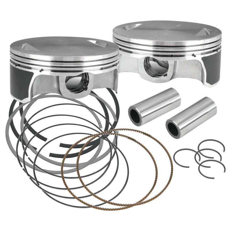 Fits: 1984-'16 HD® big twins 4 1/8 bore. Stock or S&S® heads. Piston kits include set of pistons, rings, wristpins, and clips.