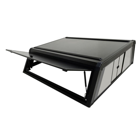 Elevate your truck experience with the Westin EXP Truck Cap With A Sliding Front Glass Window – your journey, your way. Crafted with a 5-piece extruded aluminum construction, it strikes the perfect balance between strength and lightweight design. The double wall aluminum gullwing slide doors with locking t-handles ensure security, while the no-drill installation allows for effortless setup. With the front sliding glass window, it allows pass throuhg access from the truck cab to the truck cap. The window can be opened from the interior or the exterior. With superior weather and dustproofing provided by the EPDM sponge double seal, your gear stays protected in any conditions. Equipped with integrated roof rails for mounting accessories, an auto lock/unlock rear door for easy accessibility, and heavy-duty locking t-handles with emergency release lever on driver side door, the EXP Truck Cap is built for versatility and safety. Plus, with a dynamic load limit of 300 lbs. and a static load limit of 700 lbs., it can handle all your adventure essentials. The powder-coated aluminum finish provides long-lasting corrosion protection, along with all necessary hardware and installation instructions included, completes the package. Experience durability, convenience, and style with the Westin EXP Truck Cap – because your truck deserves the best.